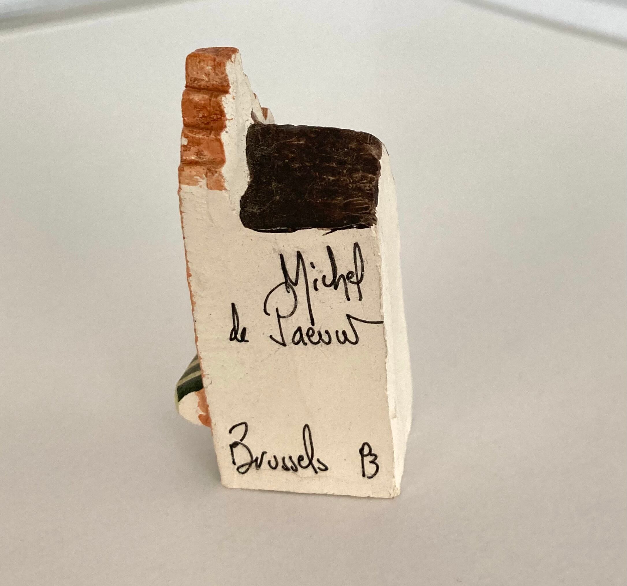 ヨーロッパの風景や日常風景をモチーフにした置物たちは、見ているだけで幸せな気持ちにさせてくれます。手作りならではの温かさと、エキゾチックさ。ぜひ、日常に特別な風を運んでくれる一品をお部屋に飾ってみてください。職人のMichel de Paeuwさんのサインが入っています。