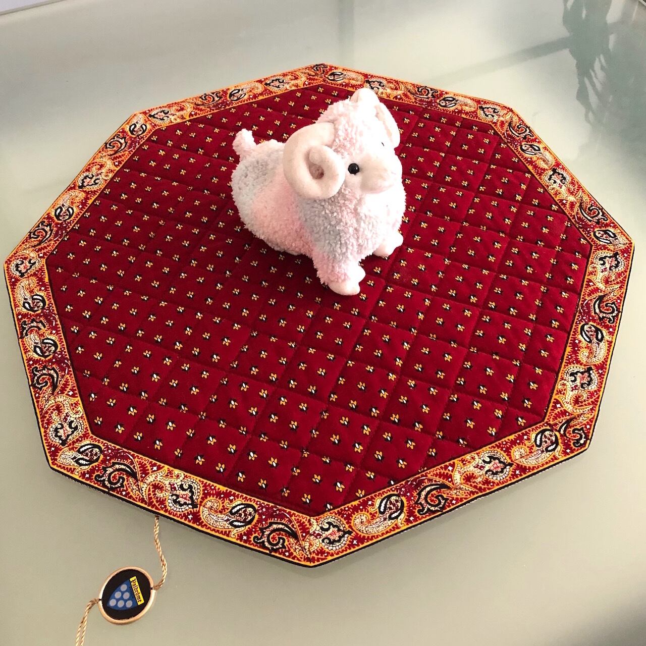 [フランス直輸入] テーブルセンター Valdromeヴァルドローム キルティング八角形42cm 赤 南仏プロヴァンス 直輸入