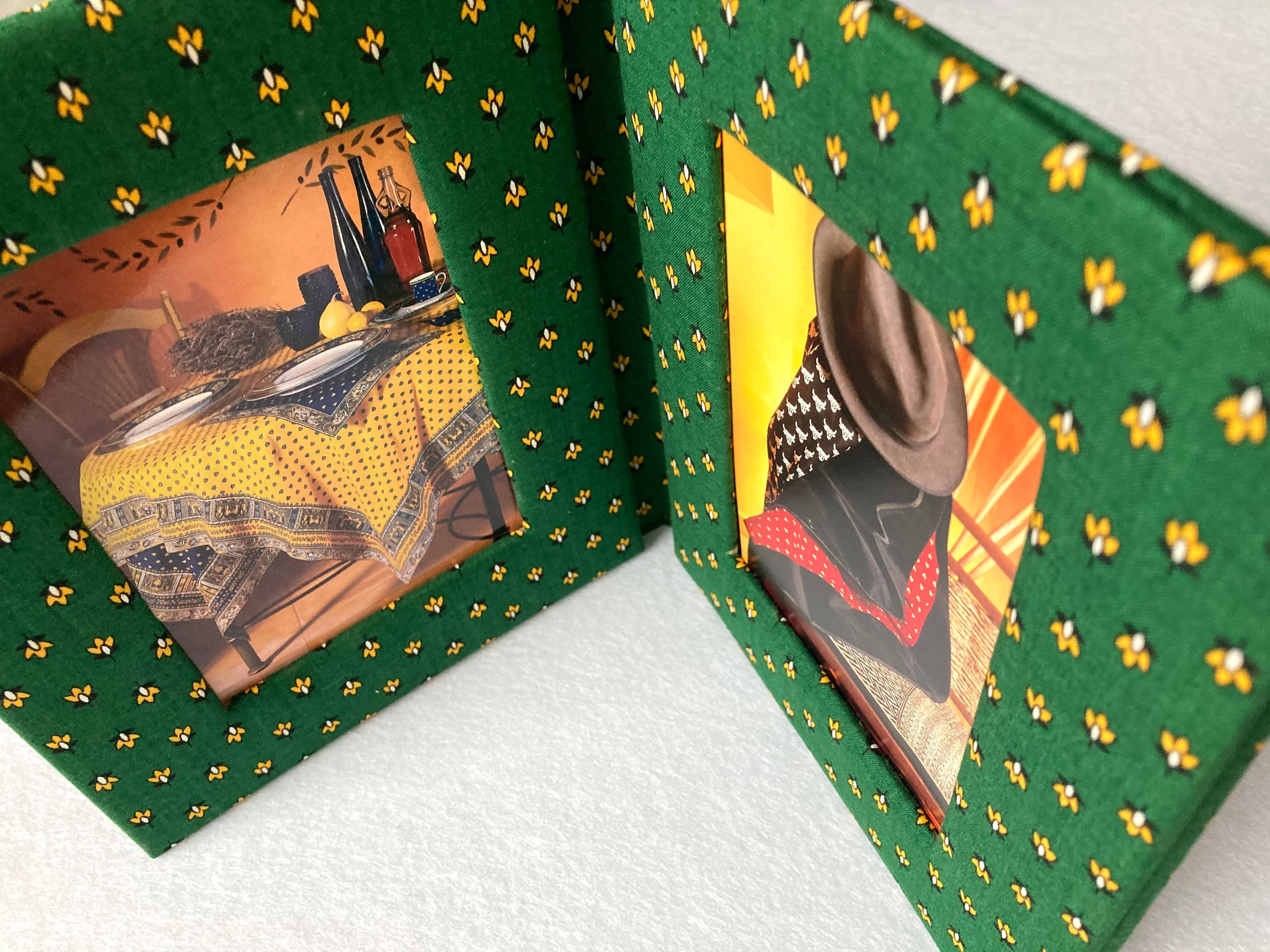 南仏プロヴァンスから直輸入された、洗練されたデザインが魅力のフォトフレームです。緑色の美しいブック型で、2枚の写真をいれることができます。お部屋のインテリアに華やかさを添え、写真と一緒に素敵な空間を演出します。南仏の風情漂う空間を感じる一品です。